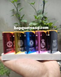 50 cái Hộp quẹt vỏ kim loại in CLB BÓNG ĐÁ, lửa tia xanh (bơm lại được)