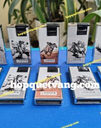 50 cái Hộp quẹt vỏ kim loại màu Vàng in Hãng thuốc, lửa tia xanh (bơm lại được )